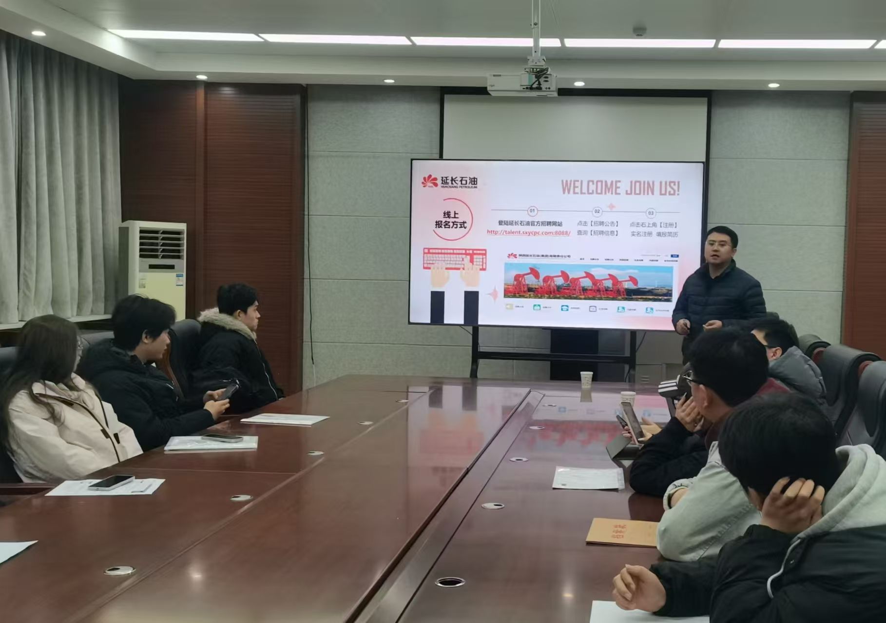 会上,学院副书记梁艳峰对陕西延长石油(集团)有限责任公司招聘团队的到来表示热烈欢迎,并详细介绍了学院的专业设置、人才培养模式及毕业生基本情况。公司负责人围绕公司发展历程、行业优势、业务布局及未来战略规划进行全面宣讲,重点解读了本次招聘的岗位需求、专业适配方向、薪酬福利体系及职业晋升路径。在互动答疑环节,企业团队针对毕业生关心的岗位工作内容、技术研发方向、入职培训机制等问题逐一细致解答,现场氛围热烈融洽,有效消除了毕业生的求职困惑。