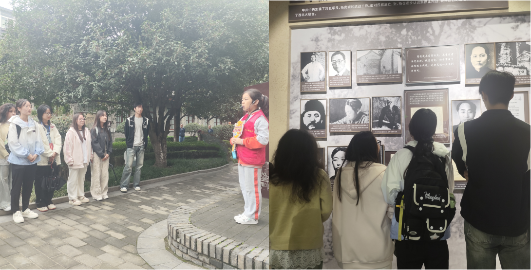 活动伊始,大家步入静穆庄严的公馆,而映入眼帘的这座历经沧桑建筑群,一砖一瓦、一草一木都仿佛在无声地诉说着往昔。大家依次参观了处处充满前人生活与工作痕迹的屋舍,斑驳的木质楼梯、泛黄的书信手稿、复原的会议室场景......每一处细节都承载着1936年那个决定中国命运转折点的历史温度。大家轻声驻足,唯恐惊扰沉睡的光阴。随后,参与者们集中观看了西安事变相关历史影片。影片通过珍贵的历史影像资料和生动的解说,将那段惊心动魄、扭转时局的历史画卷徐徐展开在众人眼前。接着,在讲解员的讲解下,大家对这段历史有了更为刻骨铭心的记忆,爱国之情、敬党之心在心中不断升腾。