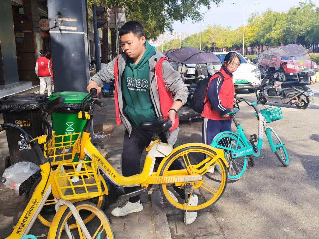 活动伊始,活动伊始,志愿者们身着统一的服装,手持清洁工具,精神饱满地集合在指定地点。随后,团队按照预先规划,分成南北两队展开行动。在清理现场,志愿者们分工明确、配合默契。有的在前进过程中仔细检查盲道,将占用盲道的共享单车挪至停放在专用停车位上,并确保头尾方向一致,确保整体整洁;有的观察步道上是否有废纸、塑料瓶等垃圾,并随手捡起投入恰当的垃圾桶中。经过一个小时的忙碌,原本被杂物占用的盲道恢复了畅通,步行道也变得干净整洁,路过的市民纷纷投来赞许的目光。