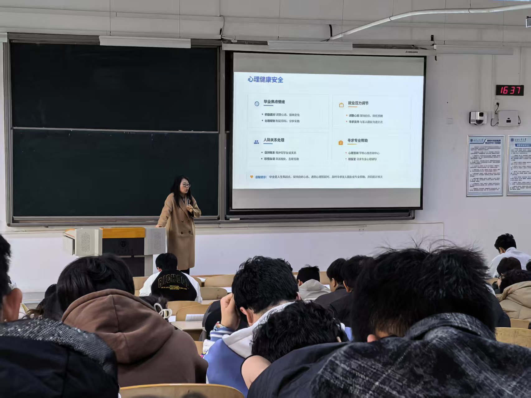 会上,辅导员针对求职实习、毕业论文、人身财产安全等重点领域开展提醒教育,警示学生警惕虚假招聘、学术不端等安全风险。同时结合毕业季实际,加强心理健康引导,教育同学们正视压力、调节心态,遇到问题及时沟通求助,全面提升自我防护意识与应急处置能力。