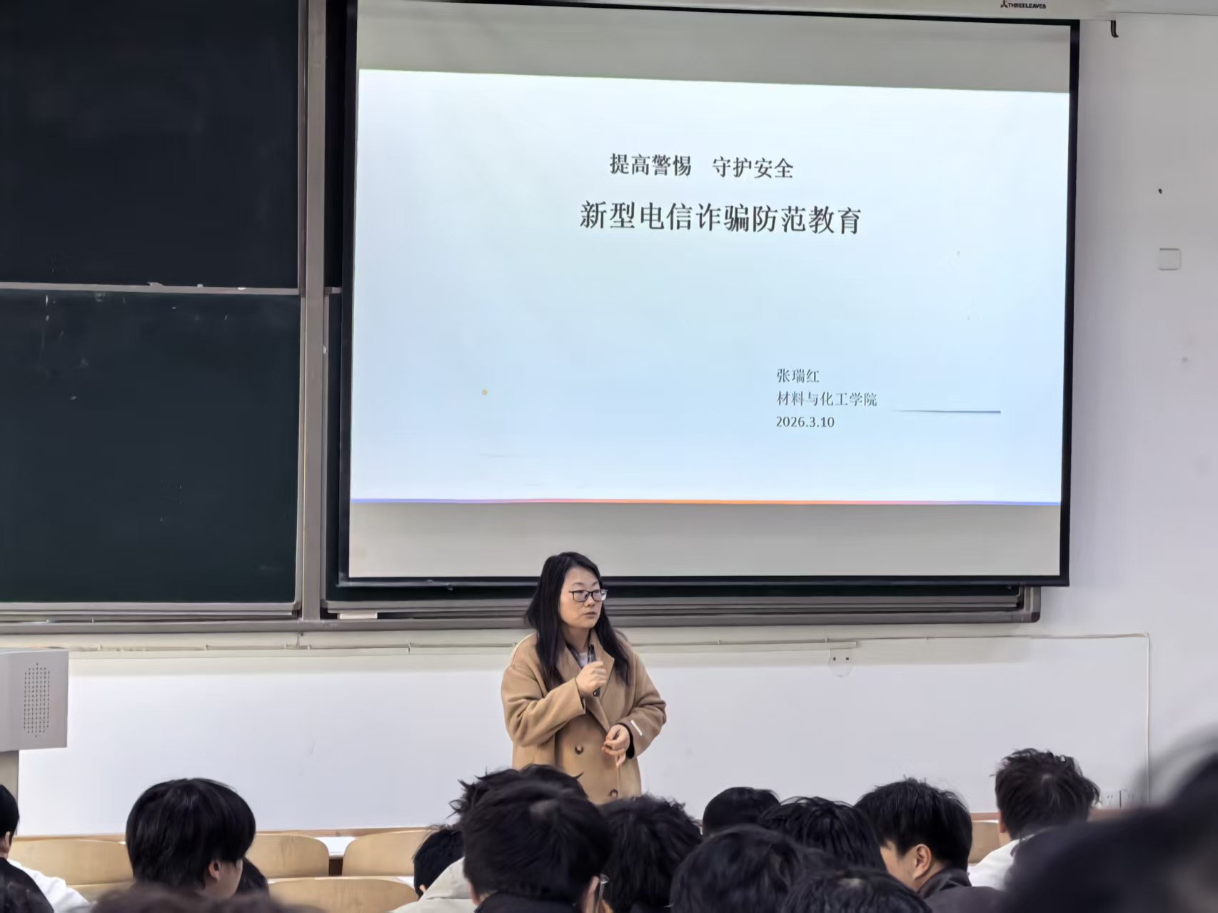 为增强学生安全意识,提升识诈反诈能力,切实守护学生人身财产安全,3月10日,材料与化工学院2022级在教1-205召开新型电信诈骗防范教育会。会议由辅导员张瑞红老师主持,三百余名学生参会。