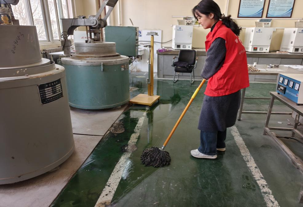 活动开始前,学院实验室负责老师对志愿者进行安全培训,明确清洁范围、操作规范与安全注意事项,强调避开精密仪器、规范处理杂物垃圾,确保劳动安全高效。随后,志愿者们携带抹布、扫帚、拖把等工具,分组进入各实验室,分工协作、有序开展清洁工作。大家认真擦拭实验台面、仪器设备与门窗玻璃,细致清理地面污渍、水槽杂物与卫生死角,规范归置实验器材,对废弃耗材、杂物进行分类整理与集中处理。劳动过程中,同学们不怕脏、不怕累,配合默契、干劲十足,充分展现了材化学子积极奉献、严谨务实的良好风貌。