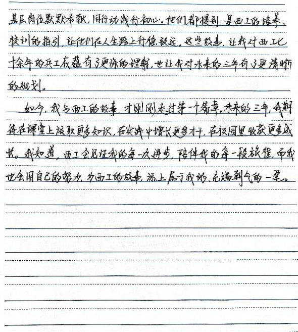 此次主题征文活动,为同学们提供了表达心声、展示风采的平台,引导学子感悟西工精神与军工情怀,增强班级凝聚力和归属感。下一步,学院将持续开展此类文化育人活动,助力学子传承优良传统、锤炼品格、成长成才。