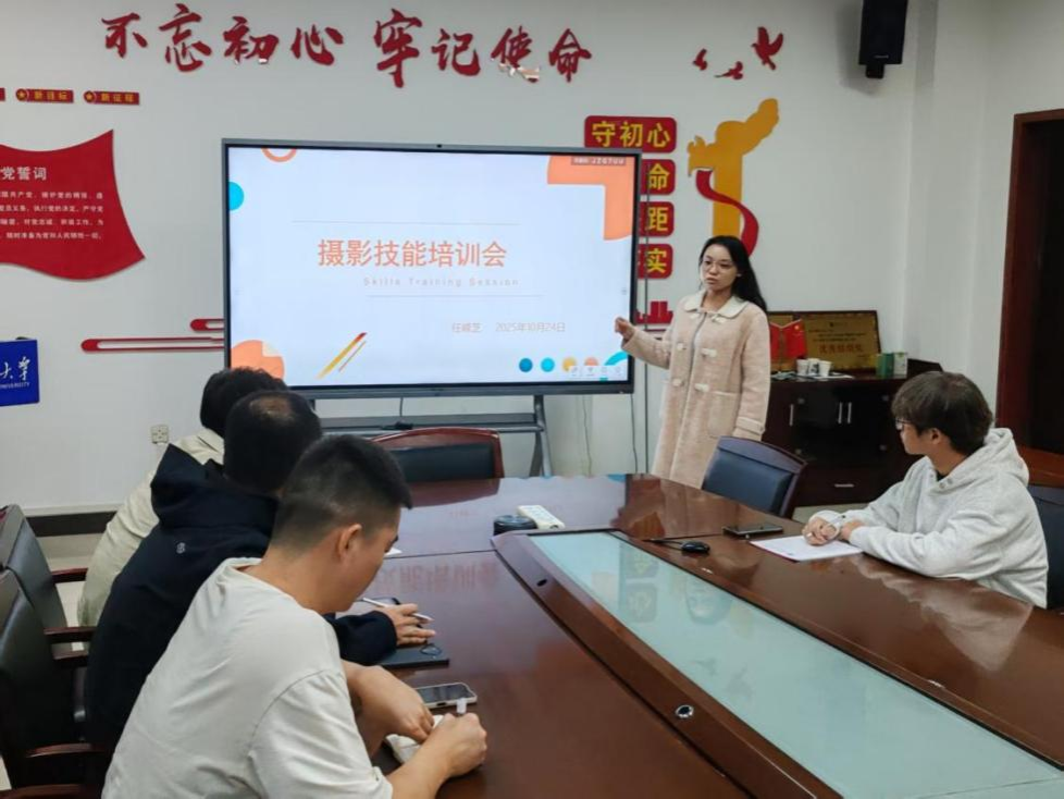 为持续深化研究生骨干宣传能力培养,进一步提升骨干摄影实操水平与宣传工作质效,夯实骨干服务学院文化建设的专业技能基础,材料与化工学院研究生会于10月23日在工三410教室,开展第二期研究生骨干专项技能培训会。本次培训会紧扣骨干技能成长需求,辅导员张启妍主持,研究生骨干任嵘芝主讲,第四届研究生会全体成员参会,切实为骨干专业能力提升注入新动能,为学院宣传工作提质增效筑牢人才根基。